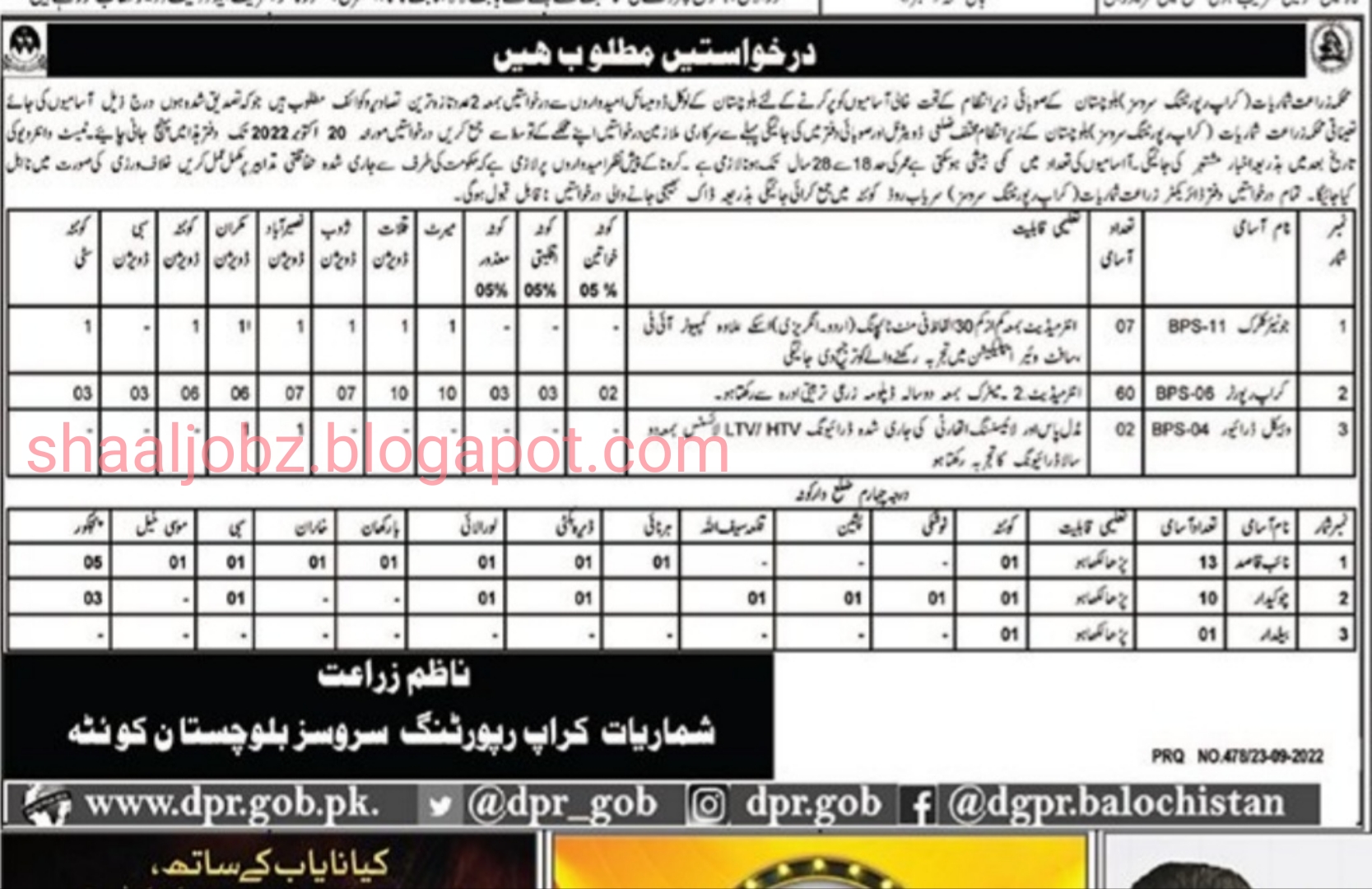Agriculture jobs |agriculture statistical crop reporting Services jobs Baluchistan-2022 - Shaal Jobs